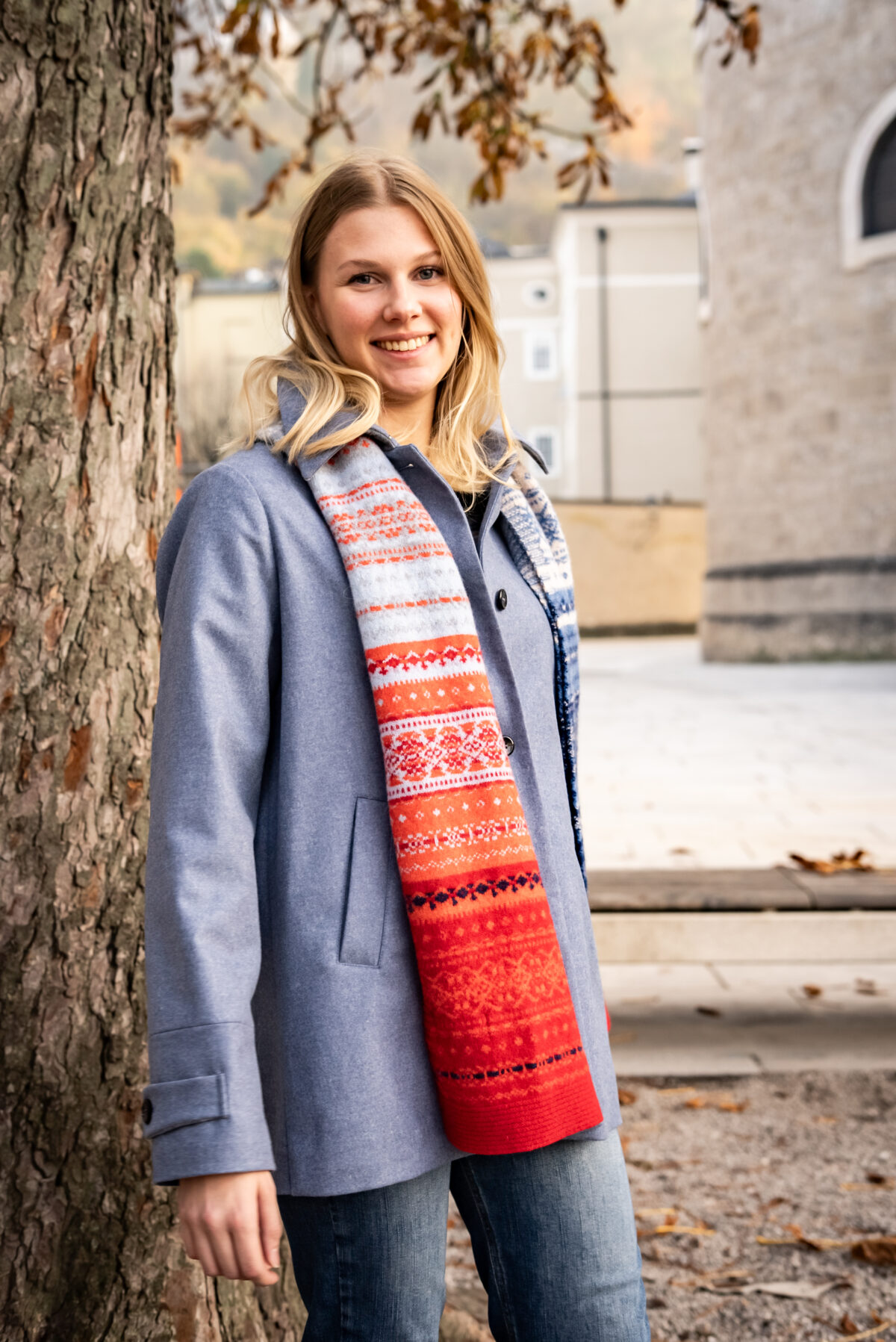 Kurzer Trenchcoat in sanften Blauton. Diese stilvolle Jacke ist perfekt für die Übergangszeit und der kuschelige Loden sorgt für ein angenehmes Tragegefühl. Ein Hingucker ist der mit Samt unterlegte Kragen. Mit der Kellerfalte sorgt dieses zeitlose Design für eine modischen Trachtenbegleiter.