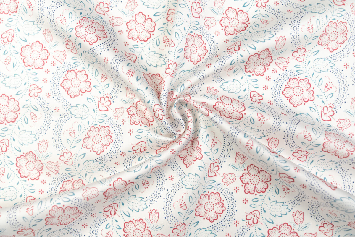 Dieser Baumwollstoff wird aus den Fasern der Baumwollpflanze gewonnen, hat einen kühlen, „wolligen“ Griff und fällt angenehm weich. Er wird in Österreich eingefärbt und mit traditionellen Modelmustern im Direktdruckverfahren veredelt.
