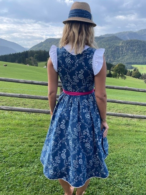Wunderschönes Blaudruckdirndl Leinendirndl im Miederschnitt mit Hakenverschluss und weißem Passepoil am Ausschnitt sowie auch am Rocksaum. Der Rock ist in trendigen 6 Bahnen geschnitten, 70er Länge und fällt wunderbar leicht. Die pinke Baumwollschürze setzt den modischen Akzent. Dieses Dirndl vereint Tradition mit Moderne und spiegelt die hohe Kunst des Blaudrucks wieder. Unsere Dirndl werden in österreischischer Maßkonfektion genäht und bestechen durch ihre hochwertige Verarbeitung und der Liebe zum Detail. Dieses Blaudruckdirndl ist perfekt für jeden Anlass und angenehm zu tragen.