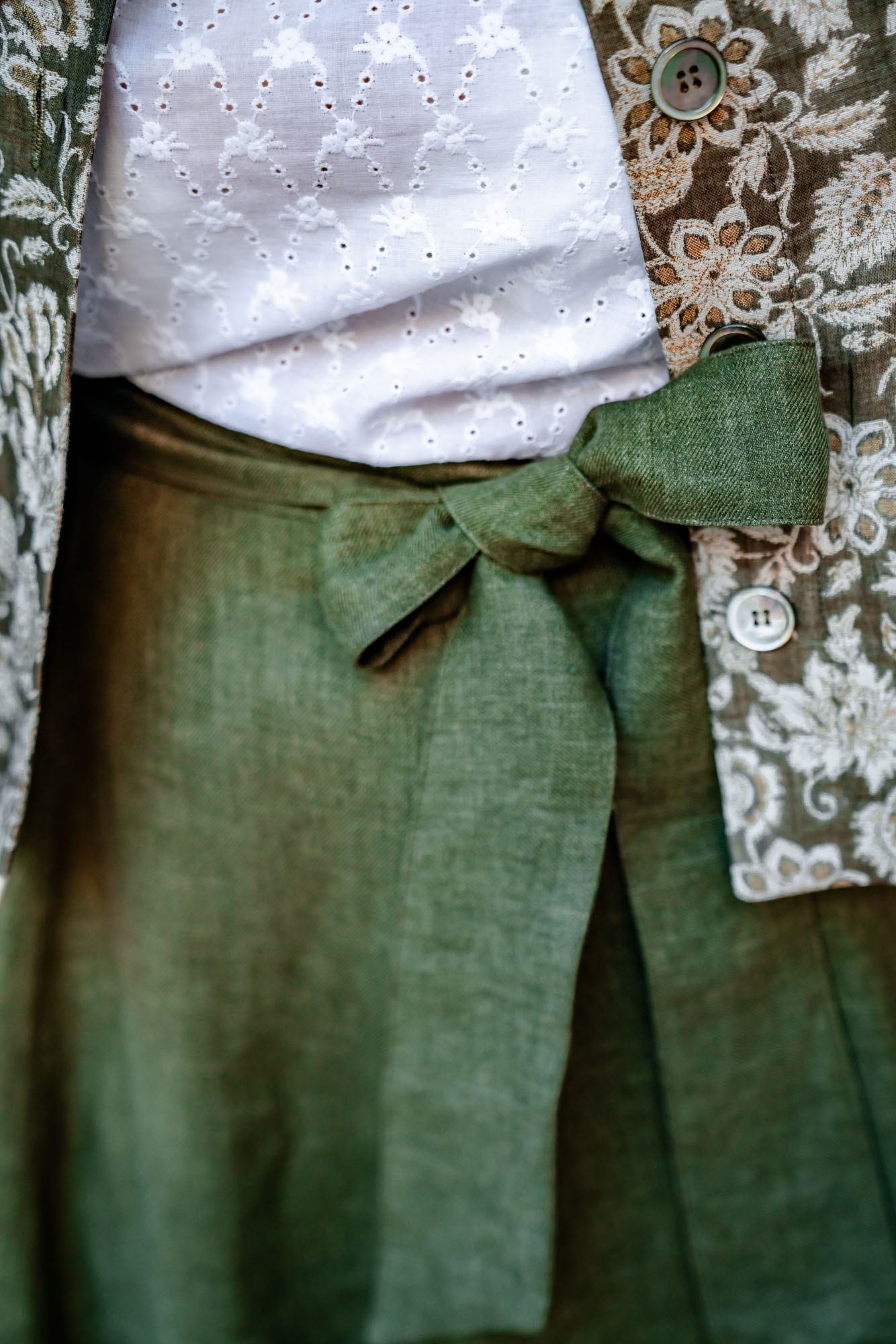 Der perfekte Begleiter für schöne Sommertage und laue Abende! Dieser Leinenrock ist in Bahnen geschnitten und schwingt bei jedem Schritt mit. Der Rock ist aus reinem Leinen – druch das melé Garn lässt er sich perfekt kombinieren. Zippverschluß in der Seitennaht, eine festliche Schleife zum Binden – Länge ca. 90cm