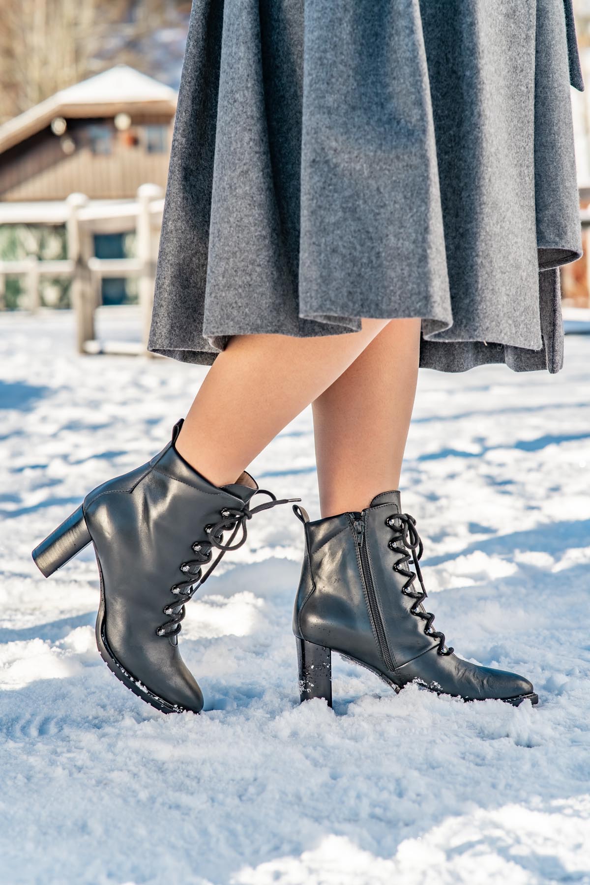Diese schwarze Damen-Stiefelette in Schnüroptik von dirndl + bua ist aus schwarzem Ziegennappa-Glattleder gefertigt und der ideale Kombipartner für vielfältigste Looks. Innenleben aus Kalbsleder, seitlicher Reißverschluß zum vereinfachten An- und Ausziehen der Stiefelette. Leicht abgerundete Schuhspitze, bequemer breiter Bockabsatz mit 7,5 cm Höhe, robuste Gummi-Sohle.