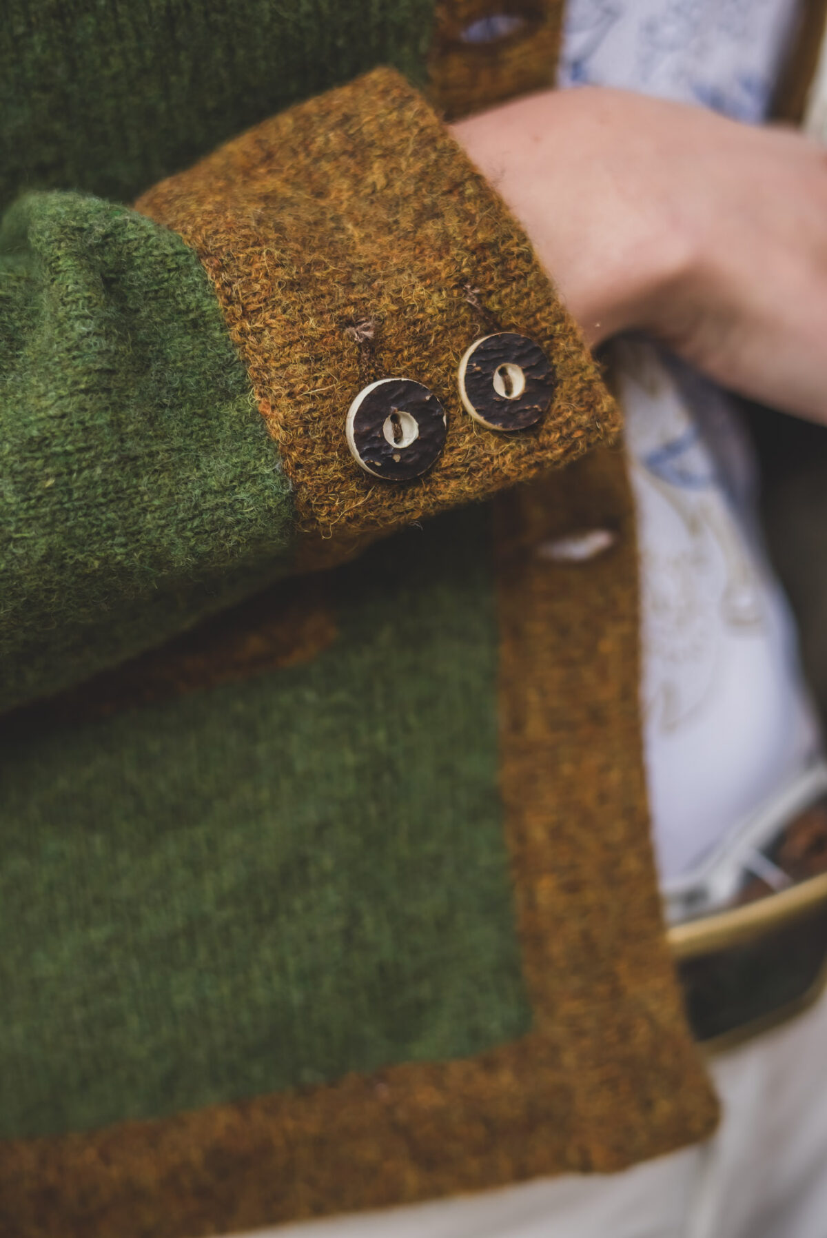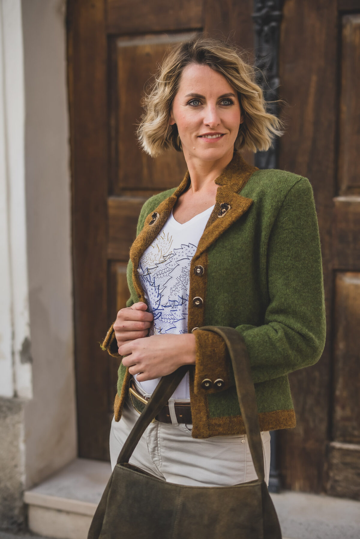 Mit dieser Strickjacke von der Salzburger Firma „Mirabell Salzburg“ aus reiner Wolle sind Sie perfekt gekleidet für jeden Anlass. Die Jacke zeichnet sich durch einen Stehkragen mit Revers und Hirschhornknöpfen und zwei Eingrifftaschen aus. Schulterpolster können herausgenommen werden.